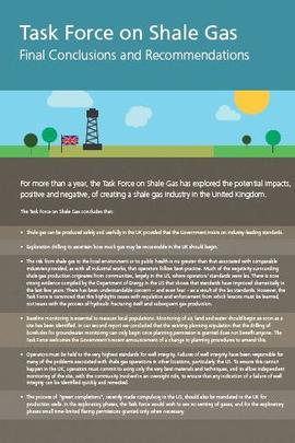 For more than a year the Task Force on Shale Gas has explored the potential impacts, positive and negative, of creating a shale gas industry in the United Kingdom. This document outlines the final recommendations and conclusions from the Task Force on whether the UK should proceed with developing a domestic shale gas industry.
